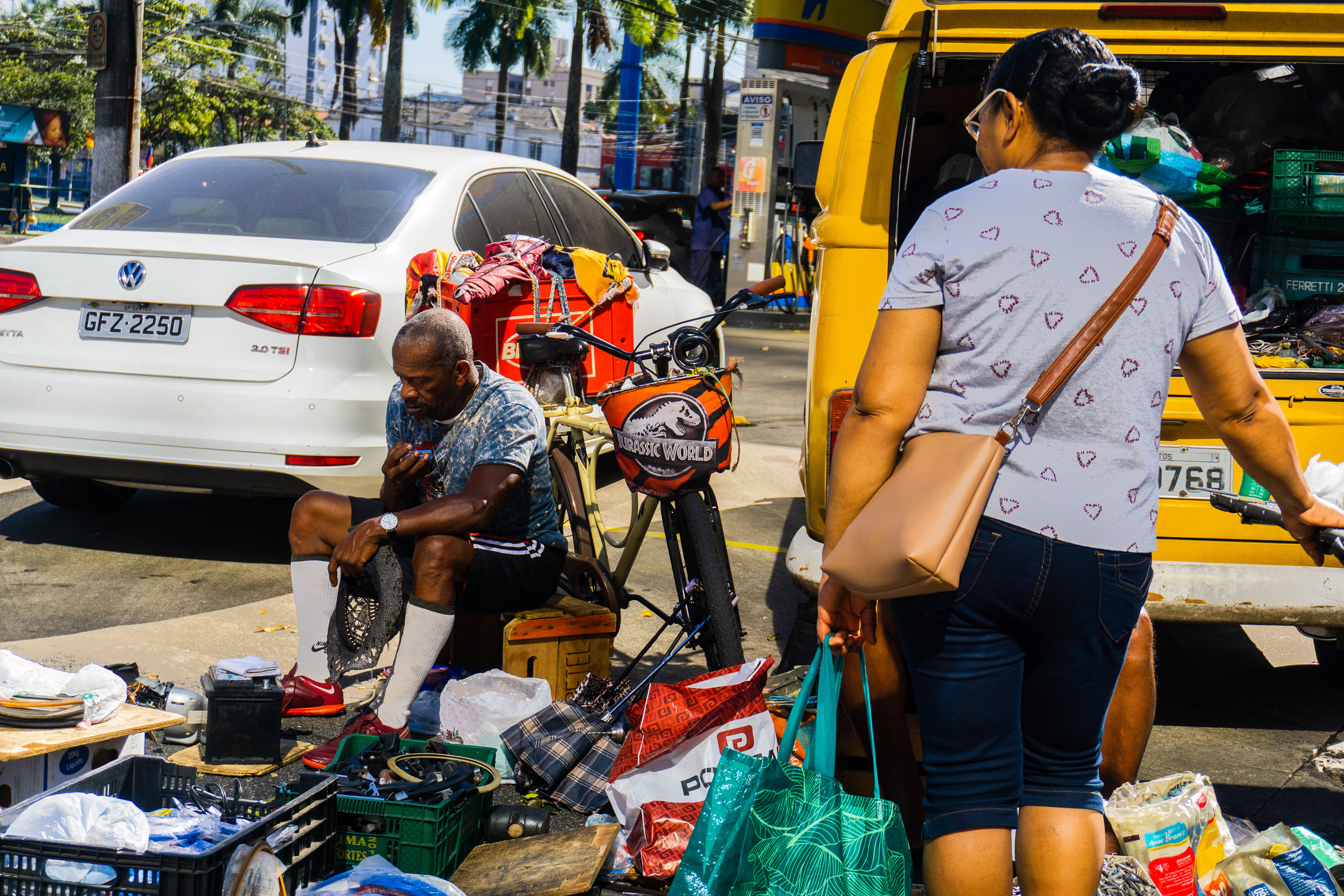 nesta exata porção da rua, durante um par de horas da manhã, o sol reflete em um prédio espelhado do outro lado da avenida, criando a melhor luz de toda a feira livre.