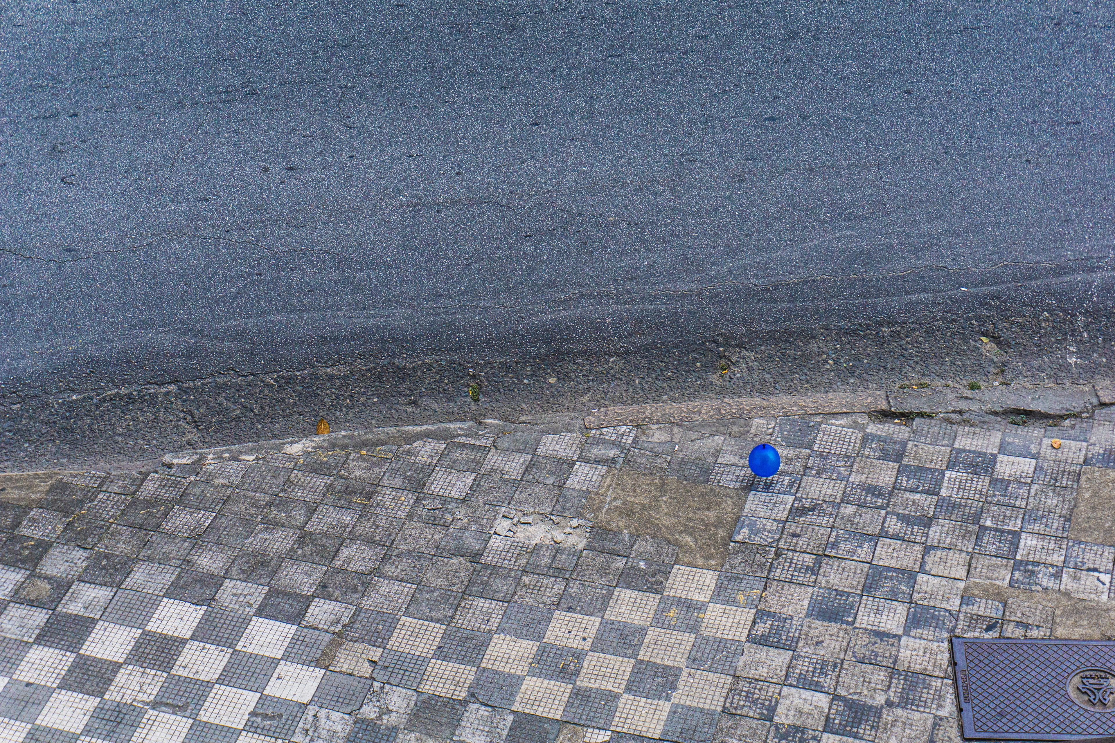 blue balloon on the sidewalk